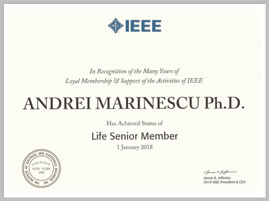 Prof. Andrei Marinescu – Life Senior Member IEEE